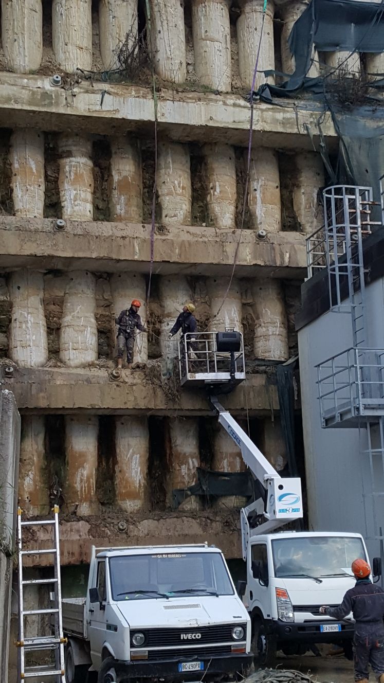 Rimozione della vegetazione e del telo verde dalla palificata situata a monte di capannoni industriali 2 -