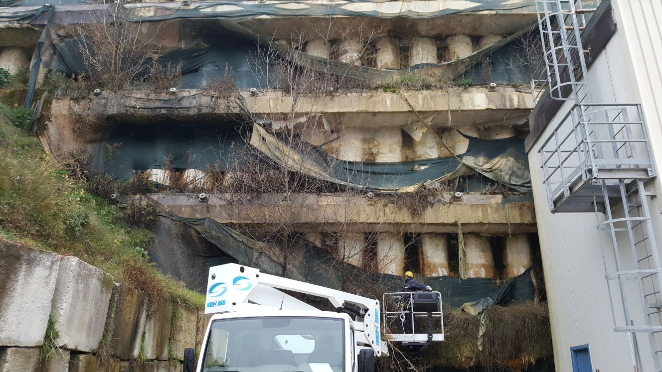 Rimozione della vegetazione e del telo verde dalla palificata situata a monte di capannoni industriali -