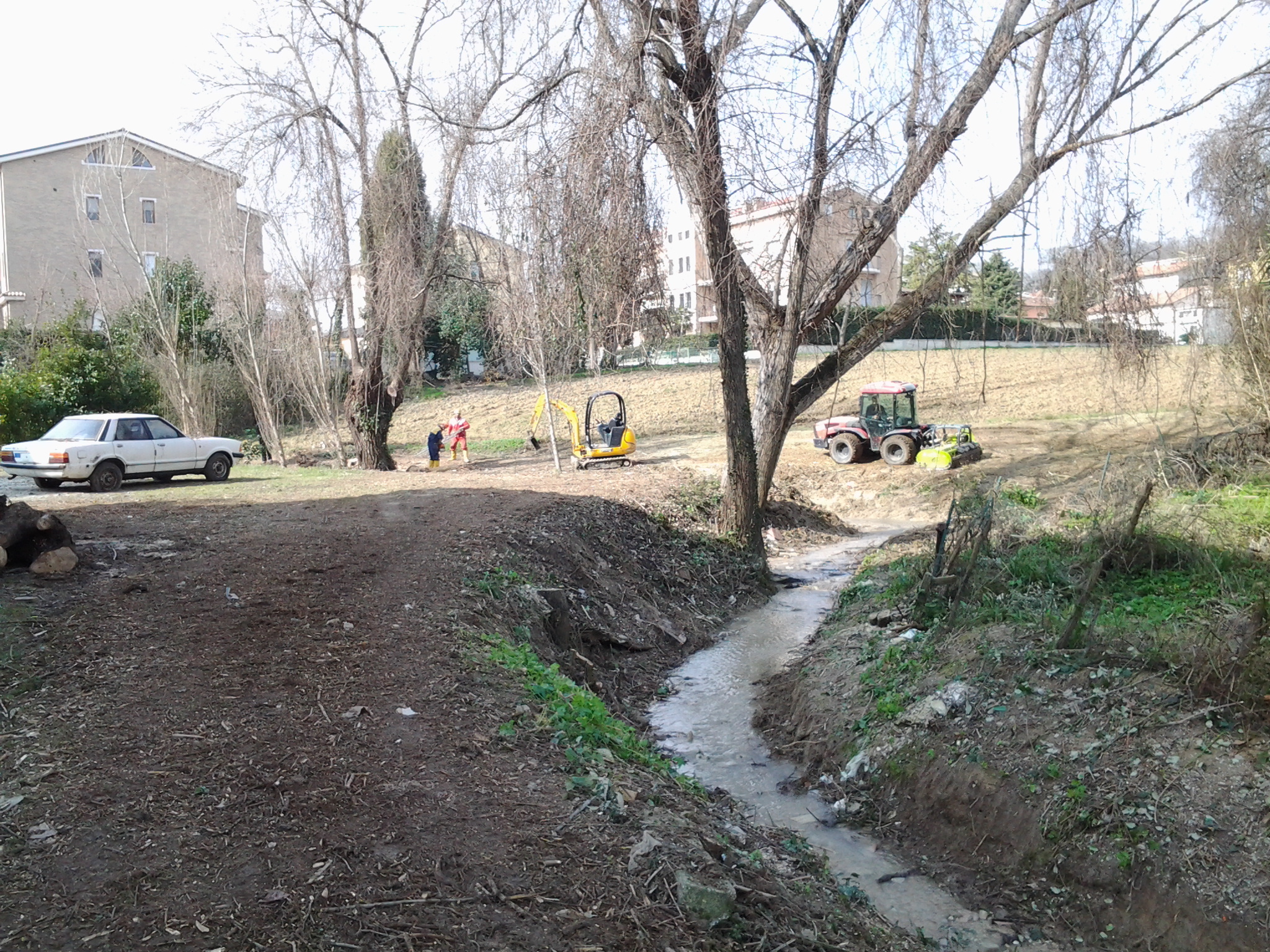 Taglio della vegetazione sulle sponde di un fosso per regolare il flusso delle acque -
