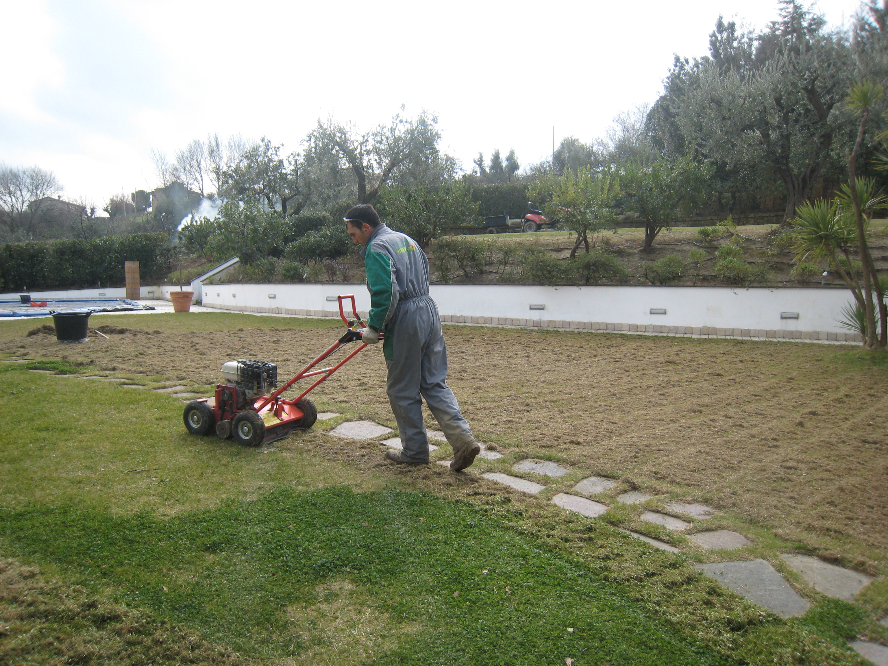 Arieggiatura e Sfeltratura di tappeto erboso presso Giardino di abitazione privata -