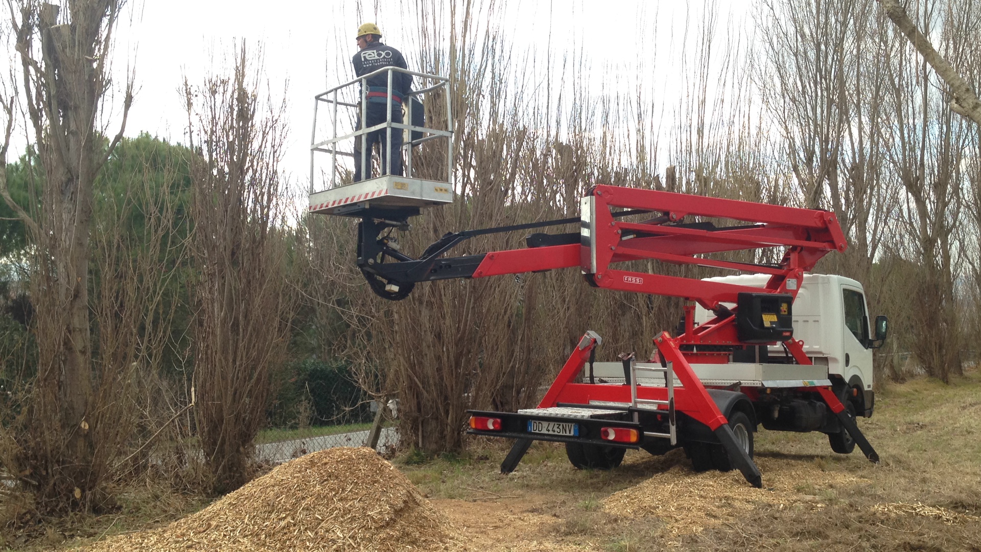 Potatura di filare di Pioppi con piattaforma aerea